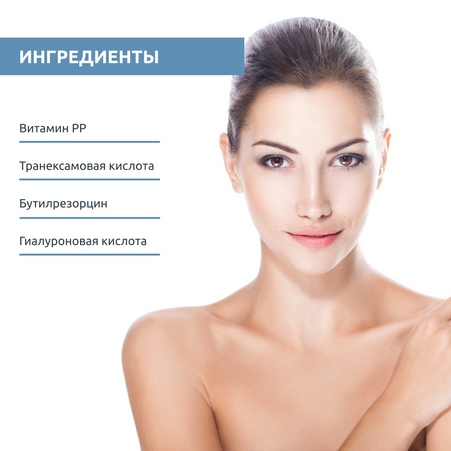 Коррекция пигментации: Блокирует синтез меланина, осветляя пигментные пятна и устраняя неравномерный тон.
