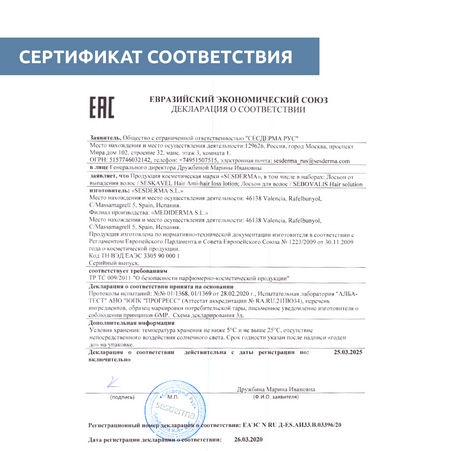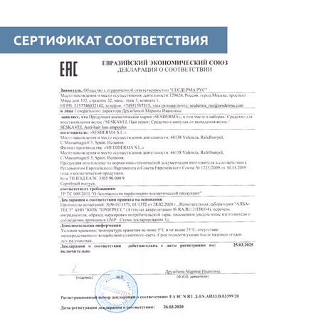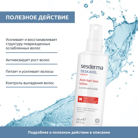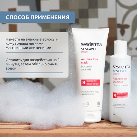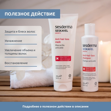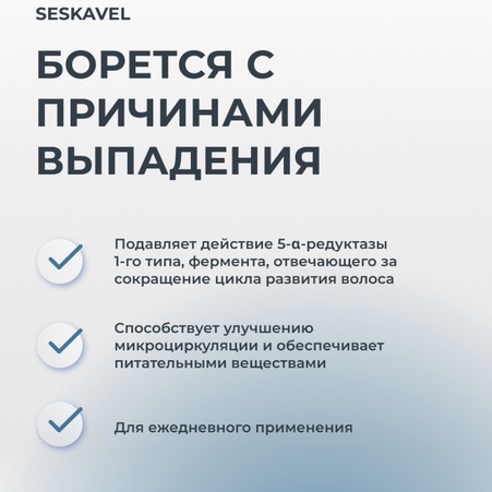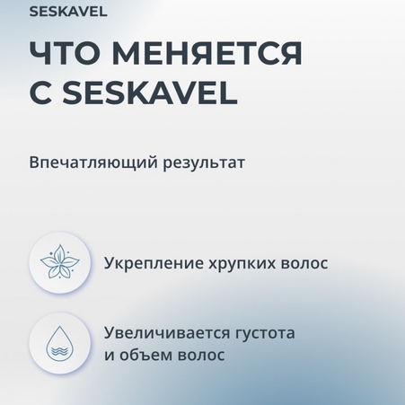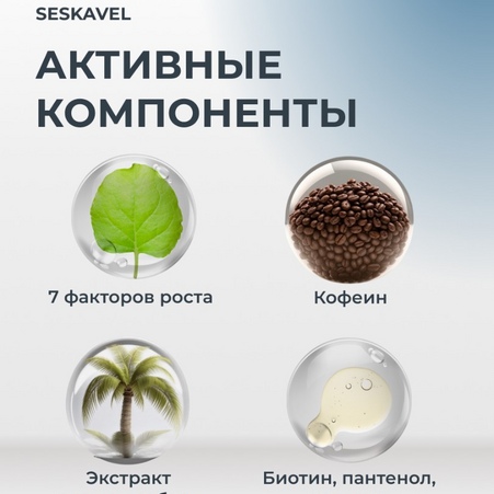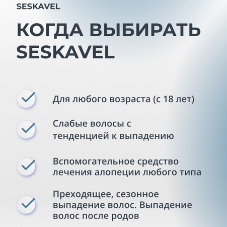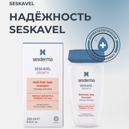 Sesderma Seskavel – это специализированная линия ухода за волосами и кожей головы, предназначенная для профилактики и лечения выпадения волос, а также стимуляции их роста. Линия включает в себя средства, которые увлажняют, укрепляют и питают волосы, предотвращая их ломкость и выпадение. Активные компоненты, такие как витамины, минералы и растительные экстракты, воздействуют на корни волос, улучшая их состояние и способствуя здоровому росту.